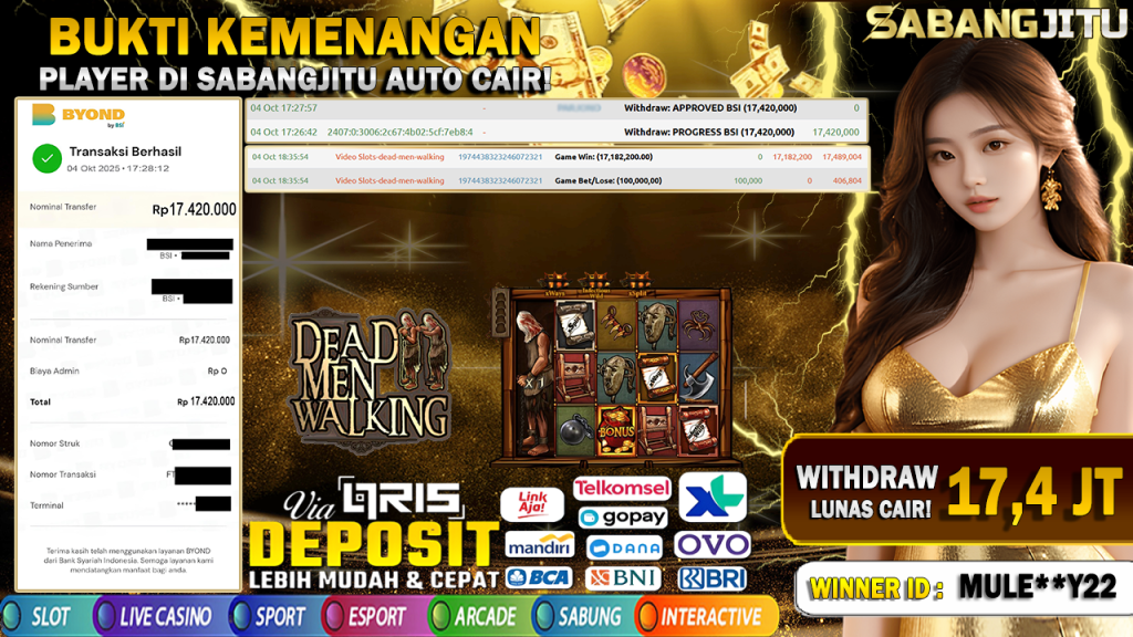 BUKTI KEMENANGAN 04 OKTOBER DI GAME dead men walking WITHDRAW 17.420.000.,-