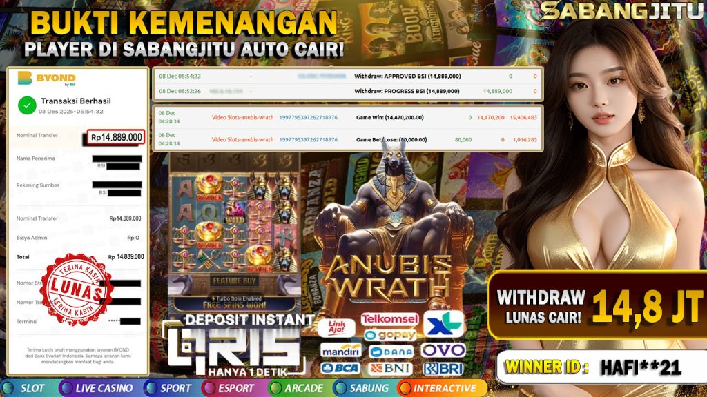 Bandar togel SABANGJITU merupakan bandar togel dan slot online yang membayar semua kemenangan member hingga lunas. Setiap pembayaran pada situs kami dilakukan dengan cara transfer ke rekening tujuan yang sudah di daftarkan pada situs togel online kami, Pembayaran hanya dapat di proses jika rekening yang di daftarkan telah valid dan dapat di transfer.  Semua kemenangan member yang mendapatkan hadiah jackpot terbesar akan kami posting agar semua pemain dapat melihat bandar situs terpercaya SABANGJITU ini membayar semua kemenangan member hingga lunas. Setiap postingan yang kami posting akan kami lakukan sensor pada nomor rekening 4 digit dan nama rekening untuk menjaga privasi dan kerahasiaan member. Postingan Jackpot yang kami posting agar member atau pemain yang belum pernah bermain bisa melihat bandar togel Bukan Kaleng Kaleng Seperti SABANGJITU ini, Semua postingan jackpot yang kami posting dapat di lihat data keasliannya melalui nomor reff yang di tunjukan pada bank atau mbanking saat kita melakukan transfer.