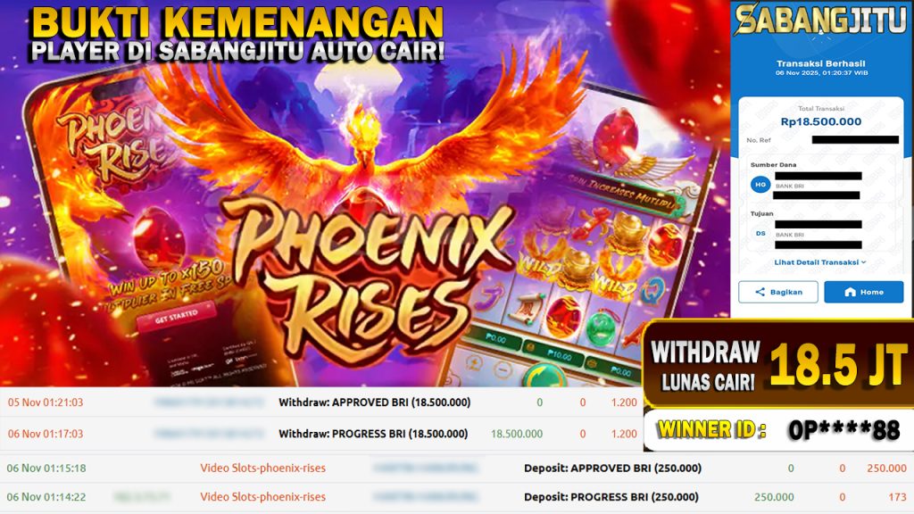 BUKTI KEMENANGAN 06 NOVEMBER DI GAME phoenix rises WITHDRAW 18.500.000.,-