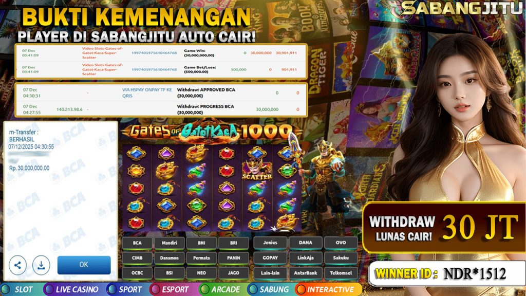 BUKTI KEMENANGAN 07 DECEMBER DI GAME GATESGATES OF GATOT KACA SUPER SCATTER RP 30,000,000