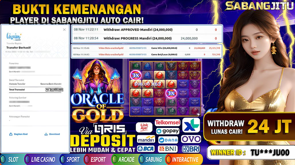 BUKTI KEMENANGAN 08 NOVEMBER DI GAME ORACLE OF GOLD WD RP,24.000.000