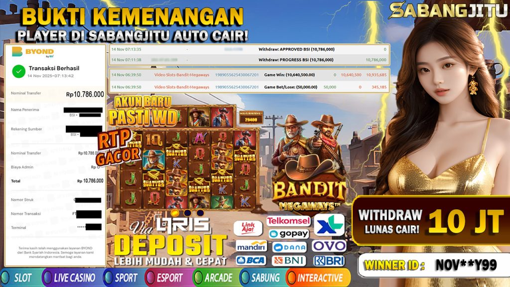BUKTI KEMENANGAN 14 NOVEMBER DI GAME Bandit-Megaways WITHDRAW 10.786.000.,-