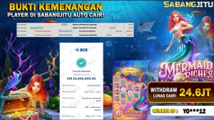 BUKTI KEMENANGAN 28 MARET DI GAME MERMAID RICHES WITHDRAW RP 24.600.000.,-